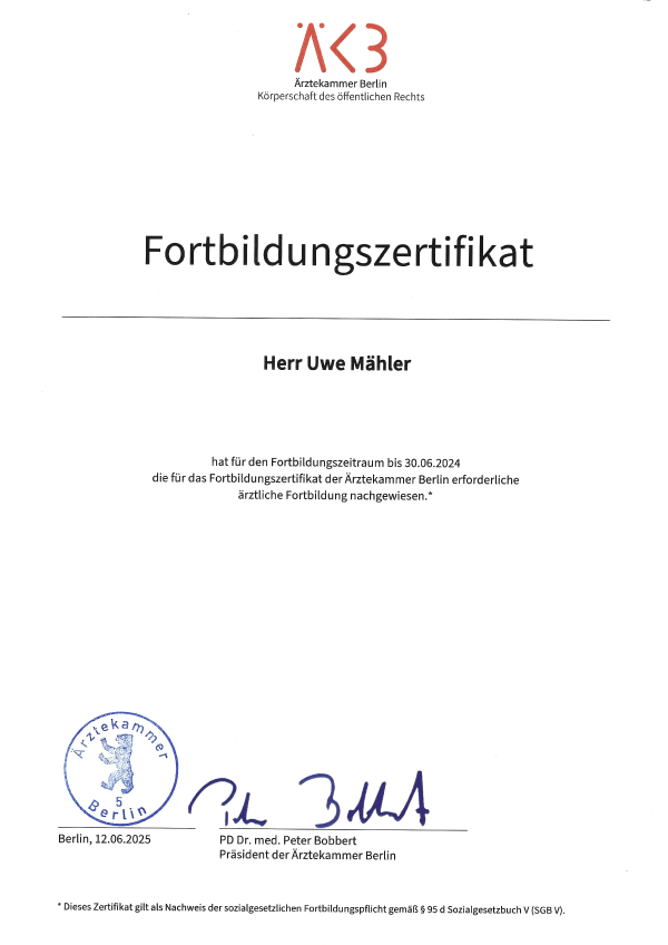 Im Verlauf der Facharzt-Weiterbildung war Herr Mähler für 9 Monate in der radiologischen Abteilung des Ev. Waldkrankenhauses Spandau tätig. Hier konnte er besondere Erfahrungen in der Durchführung von Sonografien (Ultraschall-Untersuchungen) und der Befundung von radiologischer Diagnostik sammeln.